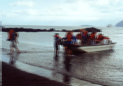 For seven days, we lived on a boat called the Tropic Sun (background) and took a dinghy from the ship to the islands.